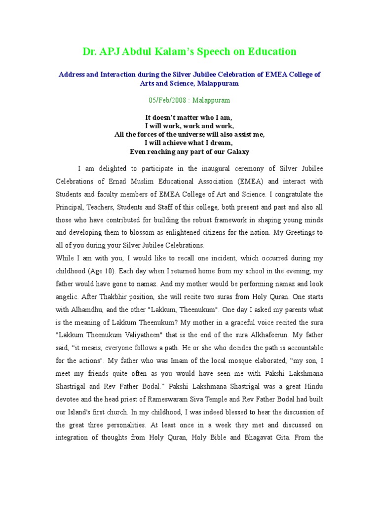 Abdul Kalam Best Speech In English / There are a lot of great speeches by apj abdul kalam but i am joining to share with you his one heartwarming lesson which he delivered at dhirubhai ambani memorial.