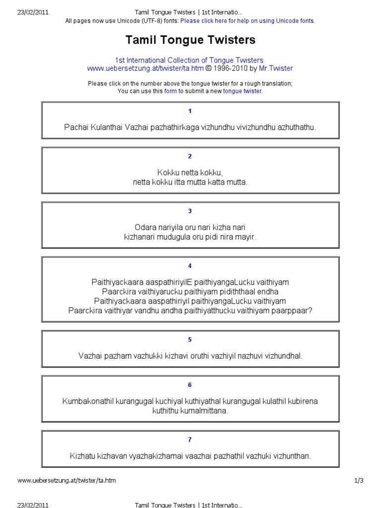 Hard Tongue Twisters In Tamil Hard Tongue Twisters In Tamil - Tamil tongue twisters for entertainment!!