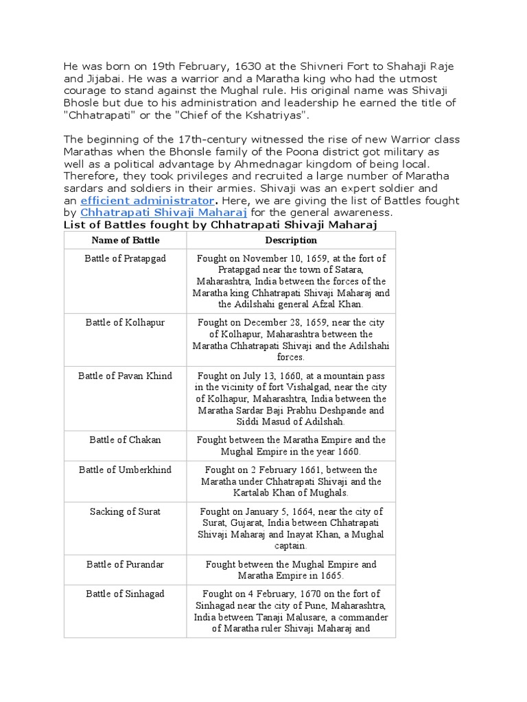 List Of Battles Fought By Chhatrapati Shivaji Maharaj - Dandakaranya was the first identity of maharashtra.